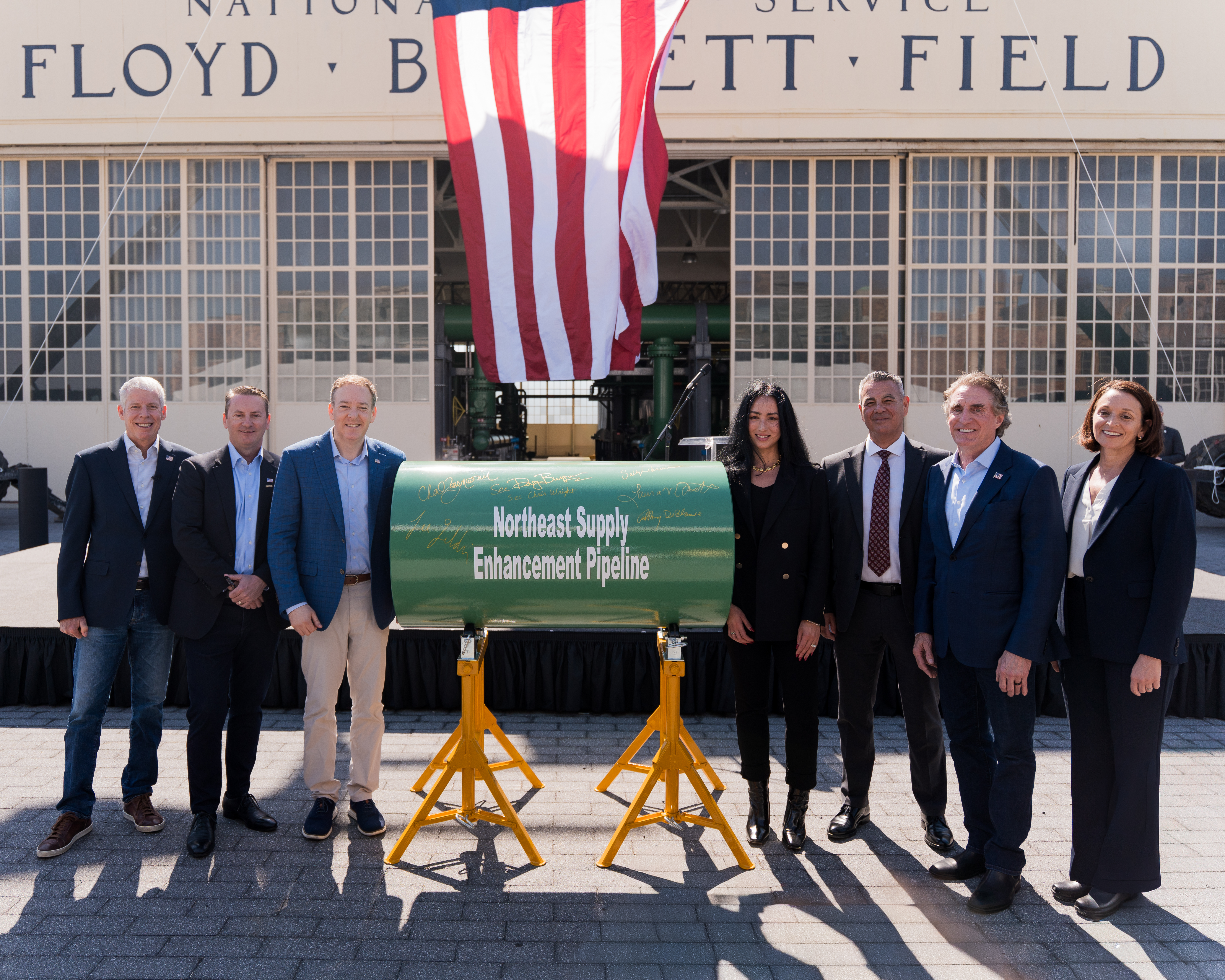Shown at Williams' groundbreaking ceremony for the Northeast Supply Enhancement project are, from left, U.S. Secretary of Energy Chris Wright; Chad Zamarin, President and CEO of Williams; EPA Administrator Lee Zeldin; FERC Chairman Laura Swett; Anthony DeBlasie, President of the Brooklyn Board of Business Agents, NYC Building Trades; U.S. Secretary of Interior Doug Burgum and Sally Librera, President, National Grid New York.